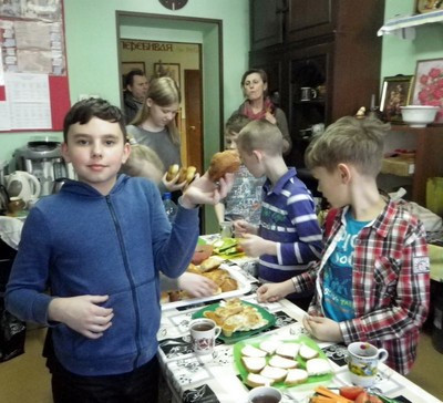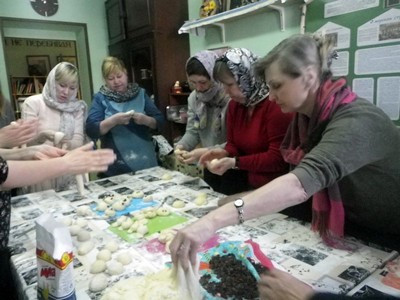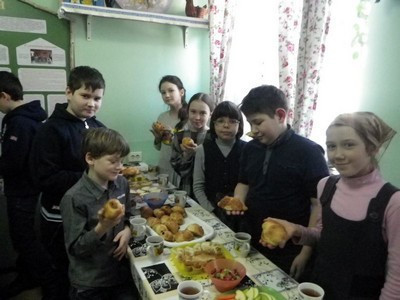Так и в этом году, между занятиями, вся Воскресная школа пекла булочки в виде птичек, чем и решается вышеозначенная задача по восстановлению утраченных и ушедших в забытье традиций.