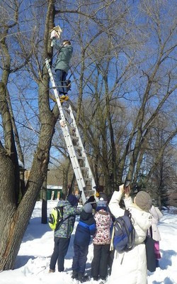 А экологический клуб «Пчела» при Воскресной школе, вместе с воспитанниками, повесил скворечник во дворе подворья для живых птиц.