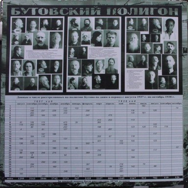 Бутовский полигон – крупнейшее в Московском регионе место массовых расстрелов и захоронений жертв сталинских репрессии. Сегодня известны имена 20760 человек здесь убиенных. Эти люди были расстреляны в течение очень короткого периода времени, с августа 1937 года по октябрь 1938. А полигон функционировал с 34 по 53 год. Поэтому, учитывая количество жертв, останки которых были обнаружены в 1997 году в раскопе одного из погребальных рвов, можно утверждать, что всего на Бутовском полигоне покоятся тела более 40000 человек (некоторые специалисты даже называют число 60000).