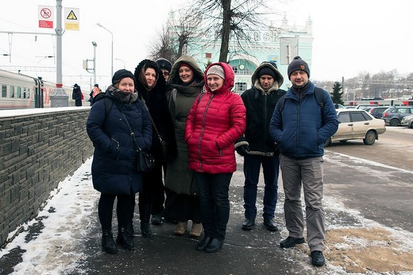 Красота русской зимы сопровождала нас с самого начала поездки. Утром было ясно, а за городом еще и снежно. Иней на деревьях переливался на лучах солнца. А самое главное – это невыразимое чувство, когда поезд несет тебя навстречу чему-то новому, интересному, в компании хороших друзей! Да ещё зимой!
