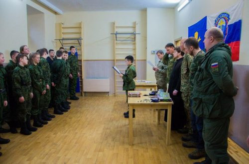 Воспитанники военно-патриотического клуба ВПЦ «СтратегЪ» храма Благовещения Пресвятой Богородицы в Федосьино приняли присягу