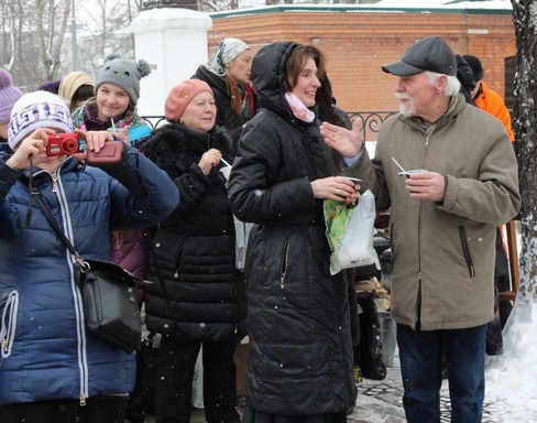Горячее участие в устроении праздника принял и глава управы района Дорогомилово Алексей Александрович Чепиков. Его попечением на площади у храма была развернута полевая кухня, так чтобы по окончании службы все желающие смогли угоститься вкусной горячей кашей. Другим почетным гостем праздника стал глава управы района Тропарёво-Никулино, давний друг нашего прихода Андрей Александрович Обухов.