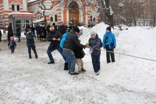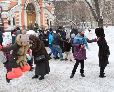 Как и в прошлые годы, главными участниками торжественного мероприятия были, конечно же, дети. Учащиеся воскресной школы с любовью и старанием выполнили поделки, которые и можно было приобрести. Помогали детям преподаватели школы и родители, добавив в ассортимент сладкие товары и блины. Пока работала ярмарка, сами учащиеся и все юные (и не только юные) прихожане, смогли поучаствовать в творческих конкурсах и спортивных играх. В этом году неожиданно для всех роль главных аниматоров на празднике взяли на себя наш настоятель, благочинный храмов Западного округа отец Серафим Недосекин и Андрей Александрович Обухов. И получилось у них не хуже, а может быть даже и лучше, чем у профессиональных массовиков-затейников. Дети и взрослые водили хоровод, перетягивали канат, скакали через прыгалки, кидали кольца и просто веселились от души.