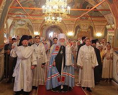 Митрополит Истринский Арсений совершил всенощное бдение в Храме Христа Спасителя и Божественную литургию в храме Преображения Господня на Песках