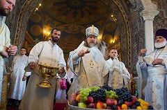 После окончания богослужения были совершены крестный ход и освящение плодов.