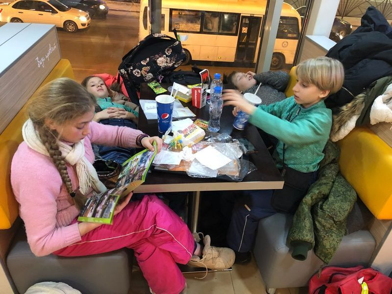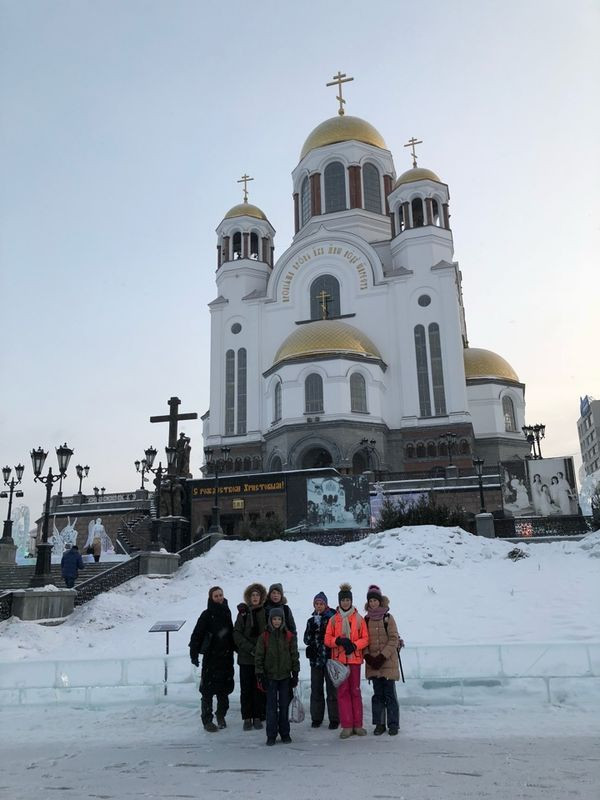 Начиналось все хорошо — мы мерзли и смеялись. Аэроэкспрессу радовались все и играли в Наруто ( это герой мультфильма). Когда мы прилетели, мы поняли, что с морозом шутить не надо. На такси мы подъехали к Бургер-Кингу. Там мы поели, поспали и немного надоели охраннику. Затем мы поехали в Храм-на-Крови. Этот храм расположен на месте расстрела Царской Семьи. Рядом с храмом мы открыли горку. Днем мы отправились в Ганину Яму, место, где уничтожались тела Царских мучеников. Ой, забыл, после горки мы посетили музей о Царской Семье. Вечером на поезде мы отправились в Верхотурье.