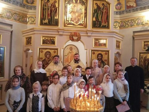 Вечером накануне праздника собор духовенства храма Рождества Богородицы отслужил всенощное бдение. Основная часть духовенства — преподаватели Воскресной школы. В сам день праздника в школьном храме была совершена Божественная литургия. Соборное служение возглавил директор и духовник школы священник Андрей Шишкин. Традиционно на литургии пел школьный хор совместно с хором молодежного клуба «Рудненцы». На праздник собралось множество молящихся. После службы для детей Воскресной школы был накрыт праздничный стол.