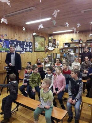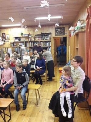 Тихая зимняя сказка 14 января 2018 Автор постановки Роман Гончаров поздравил зрителей с праздником и обещал в следующем году прийти вновь с новой поставкой.Дети и родители сердечно поблагодарили исполнителей за подаренный праздник.
