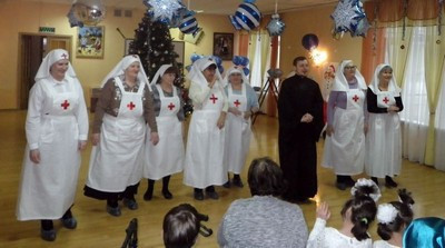 В делегацию сестер милосердия в детский дом вошел старший преподаватель Воскресной школы диакон Андрей К., передавший благословение и добрые пожелания от настоятеля храма протоиерея Георгия Студенова директору специального коррекционного детского дома № 11 Слюсаревой Лидии Евгеньевне.