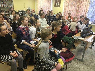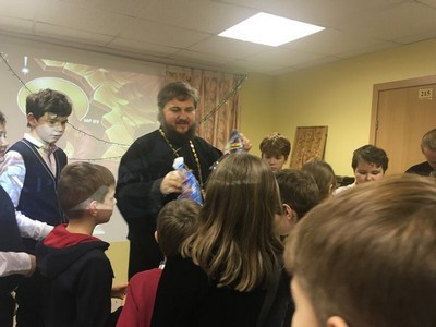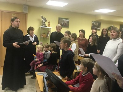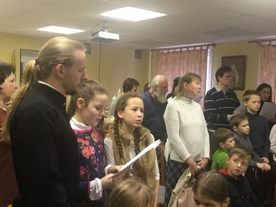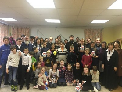 По окончании Божественной Литургии воспитанники Воскресной школы собрались в актовом зале, где вниманию зрителей был представлен концерт, подготовленный совместными усилиями учащих и учащихся.