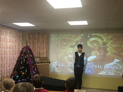 Ведущий утренника — штатный катехизатор храма Никита Громов в формате живого общения со зрителями напомнил о происхождении и значении праздника Рождества Христова. Вспоминая о празднике, дети наперебой отвечали на вопросы ведущего, показывая свои знания, приобретенные на уроках в Воскресной Школе. Далее Никита рассказал о традициях и главном символе Рождества, о том, что звезда на вершине ели — незабвенная Вифлеемская звезда, по которой волхвы нашли путь к колыбели Младенца Иисуса.