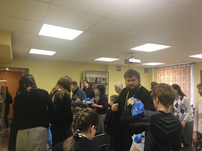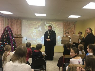 После того как смолкли аплодисменты на сцену поднялся протоиерей Серафим Недосекин, он тепло поблагодарил всех артистов, за интересную и хорошо подготовленную программу, еще раз поздравил всех с праздников, и приступил к приятной части Рождественской елки – раздаче подарков.