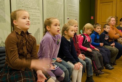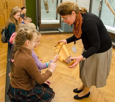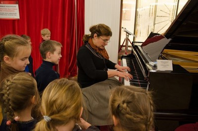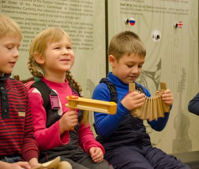 25 ноября 2017 года, ребята 2-ух младших групп воскресной школы храма святителя Димитрия Ростовского в Очакове посетили музей музыкальной культуры им. Глинки. Огромные музыкальные инструменты дети увидели сразу, как только вошли в музей, еще до начала экскурсии, и им не терпелось на них скорее поиграть! В начале экскурсии нас провели в зал инструментов разных народов мира и там ребятам раздали разные деревянные трещетки, ложки, бубны, маракасы и под музыку все вместе играли на своих музыкальных инструментах, так что у детей получился свой маленький ансамбль. В других залах ребята слушали экскурсовода, сидя на полу на подушках, периодически перемещаясь и снова усаживаясь по полу в зале. В музее дети увидели настоящую скрипку Страдивари и необычные клавишные инструменты. В одном из залов им показали несколько старинных музыкальных шкатулок и терменвокс – пространственный инструмент, на котором играют, не касаясь его. В последнем зале ребят учили танцевать мазурку и другие танцы. Дети остались под впечатлением от музея, от такого количества и разнообразия музыкальных инструментов и довольные поехали на автобусе обратно в храм. После чая и перекуса у ребят начались занятия в воскресной школе.