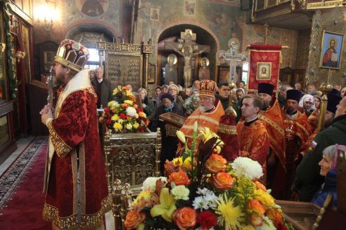 По окончании богослужения протоиерей Георгий Студенов обратился со словом приветствия к Преосвященному епископу Тихону.