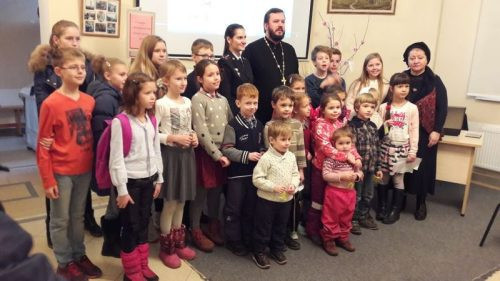 Инспектор ГИБДД рассказала детям о правилах поведения на улице и опасностях подстерегающих ребят на проезжей части. Воспитанники Воскресной школы внимательно, с интересом слушали инспектора. В конце встречи ребята получили в подарок от сотрудника ГИБДД светоотражающие знаки для размещения на одежде.