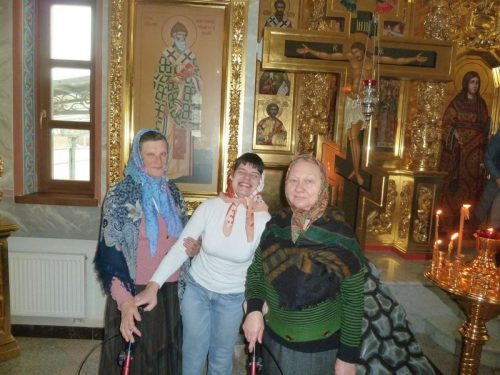 По традиции по окончании службы мы все вместе пообедали в трапезной, где для прихожан, батюшек и гостей приготовили прекрасный обед. Анну поздравили с днем рождения и подарили подарки. Нашлись добрые люди и помогли поднять Анну по лестницам, потому что передвигаться по ним самостоятельно она не может. Праздничные часы пробежали незаметно, и вот уже нужно ехать обратно, возвращаться в стены родного дома инвалидов. Да! Он, конечно, родной, но там Анна проводит каждый день и ночь, круглые сутки. Глаза из счастливых стали грустными, так ей не хотелось уезжать.