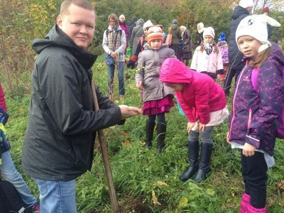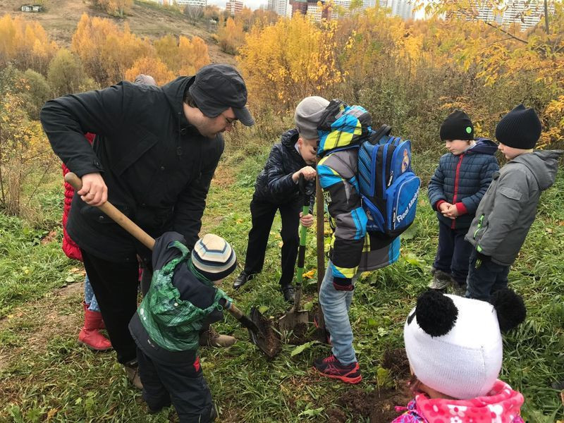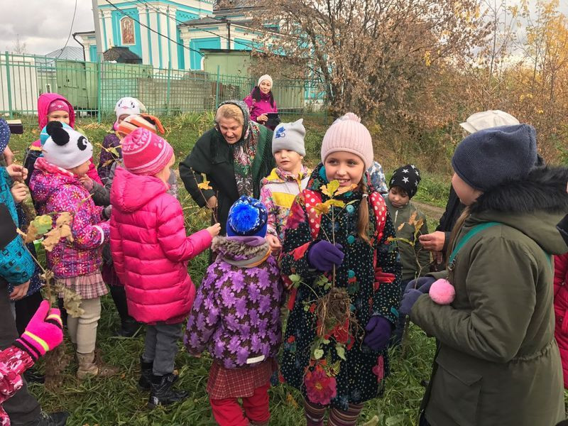 После семинара дети и родители посадили 11 молодых дубов вдоль дороги от храма к святому источнику.