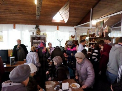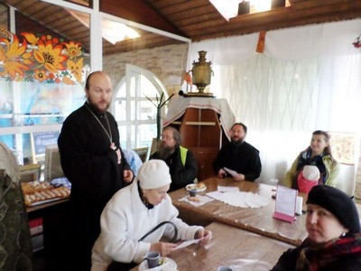 Вел презентацию руководитель молодежного клуба «Неофит» диакон Андрей К., представивший концепцию открытого пространства и рассказавшего о планируемых мероприятиях. А в это время члены клуба Сергий и Валерий угощали чаем и выпечкой прихожан и всех присутствующих из настоящего самовара.