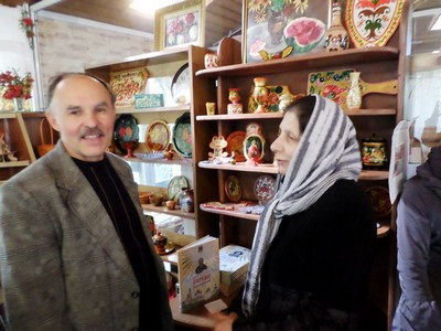 Украшением пространства является выставка-продажа мастера русской росписи Герасимова С.М., представившего свои произведения. А Нина Васильевна пригласила желающих начать изучение церковно-славянского языка на практике!