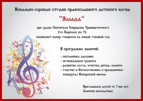 Вокально-хоровая студия православного детского клуба «ЭЛЛАДА» 5 октября 2017 Вокально-хоровая студия православного детского клуба «ЭЛЛАДА»