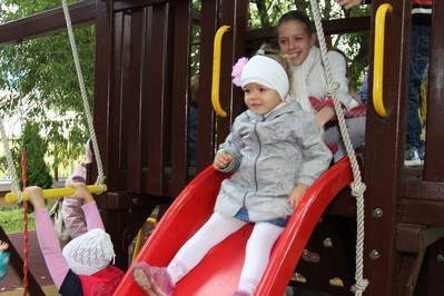 В этом году, по предложению директора школы, все ребята из подготовительных групп и 1-го класса катались с горки, устроенной во дворе храма, где внизу их принимали учителя в свои руки. Было весело и памятно.