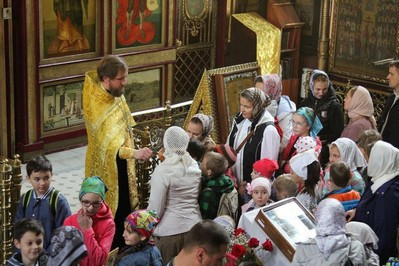Первые уроки, согласно разработанной и воплощаемой Программы обучения, были посвящены знакомству учащихся с преподавателями и их предметами, а также историей города, района и храма. Храм посетили все воспитанники школы, начиная от подготовительной группы, заканчивая старшей группой, где ребята и взрослые познакомились с его святынями.