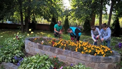Также ребята, сажавшие цветы в конце мая в день последнего звонка, сорвали плоды своего ухаживания – цветы, и преподнесли их к иконе Архистратига Михаила.