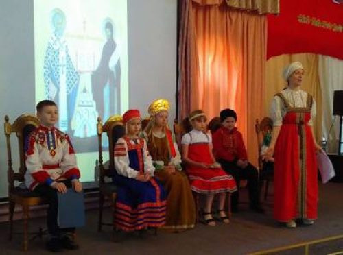Началом праздника стала общая молитва – тропарь св. Кириллу и Мефодию. Затем на карте были показаны страны, где звучит богослужение на церковнославянском языке. Параллельно рассказываемому житию святых просветителей словенских, на празднике звучали классические произведения русских композиторов, песни на различных языках славянского ареала (например, песня «Одинокая гармонь» на польском языке), а также записанное видео артиста театра и руководителя театрального кружка Нагорнова А.В., процитировавшего оригинал звучания отрывка древнерусского произведения «Слово о полку Игореве».