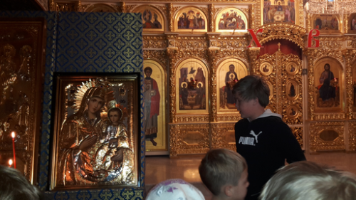 В завершение экскурсии Матвей, сильно волнуясь, замечательно рассказал историю обретения на Афоне Иверской иконы Божией Матери, в честь которой освящён верхний придел храма.
