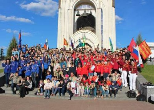 По окончании молебна скаутский парад под барабанный бой двинулся к Монументу Победы на Поклонной горе. Скауты, официальные лица и все прочие участники мероприятия почтили память героев минутой молчания, после чего возложили цветы к монументу Победы и также строем вернулись на храмовую площадь. Здесь прошло награждение победителей БГИ-2015, церемония принятие новичков-волчат в скауты, вручение достойным скаутам очередных наград и знаков отличия.