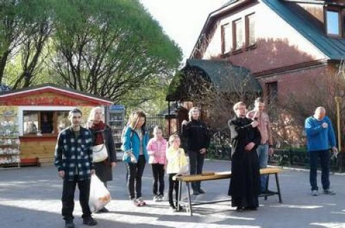 После беседы с блюстителем чистоты Подворья, участники праздника разделились по группам и убрали территорию, а также помыли окна в Воскресной школе.