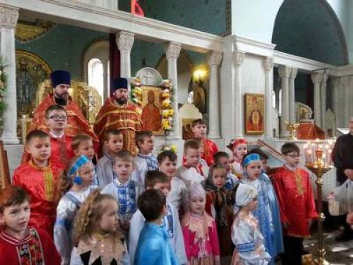 Ребята исполнили пасхальные песнопения, рассказали стихи и поздравили прихожан со светлым праздником Воскресения Христова.