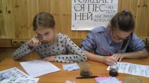 С большим усердием, и явным удовольствием выписывали мы сложные и витиеватые буквы, и радовались одинаково, как взрослые так и дети когда получалось красиво. Художник Екатерина предложила сделать занятия по каллиграфии регулярными, и это предложение было поддержано всеми.