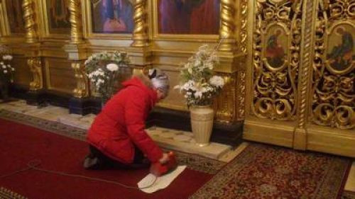 Накануне Крещения Господня 17 января 2017 Даже маленькая прихожанка Василиса тщательно и усердно чистила подсвечники — «Все должно блестеть!»