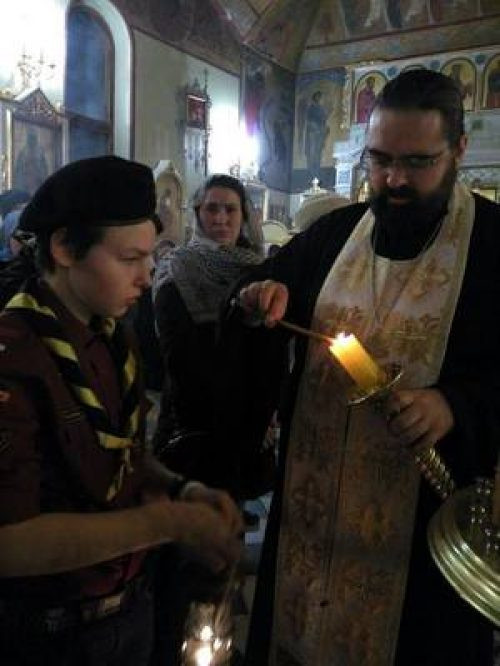 Частичка Вифлеемского огня добралась и до нашего храма Архистратига Божия Михаила близ Кутузовской избы. Ее доставили к нам КАМЧЕНКО Надежда Олеговна, депутат Муниципального округа Ломоносовский, руководитель МБУ «Альмега», под крылом которого существует Детское общественное движение Скаутская дружина «Юго-Запад» РДОО «Скауты Москвы»; заместитель директора ГБУ «Альмега» Виталий Данилкин и их подопечные.