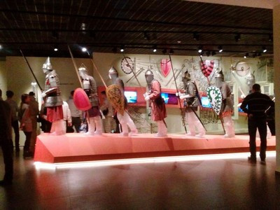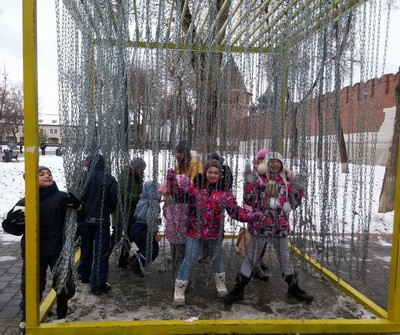 В завершение открытий первого дня мы просмотрели богатейшую экспозицию Тульского музея оружия. Часть экспонатов можно было потрогать руками, а также примерить военную одежду и прочую амуницию на себя. Очень символично, что на Дмитриевскую родительскую субботу мы отправились осматривать мемориальные комплексы Куликова поля. В селе Монастырщино возле храма Рождества Пресвятой Богородицы,заложенного по приказу Дмитрия Донского, мы стали свидетелями традиционных для Тульской области проводов в армию призывников –настоящего праздника с реконструкцией битвы на мечах и разными конкурсами.