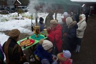 Социальная группа прихода организовала чаепитие из самоваров со сладостями. За небольшим прилавком продавали выпечку — пирожки с различной начинкой. Вырученная сумма от продажи пирожков будет направлена на поддержку многодетных семей прихода.