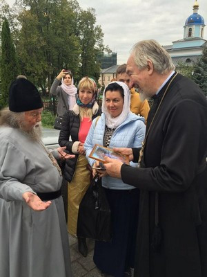 Одним из важных событий стала встреча-беседа с наместником монастыря, архимандритом Венедиктом. Отец Венедикт заботливо пригласил всех в свою приемную, где пообщался с московскими гостями. Батюшка рассказал немного о монастырской жизни, а также пожелал каждому из присутствующих сподобиться в своей жизни помочь хотя бы одному человеку прийти к Богу. Такое явление, опираясь на слова апостола Павла, отец Венедикт называет «родить кого-то во Христе»: «Я родил вас во Христе благовествованием» (1 Кор. 4, 15).