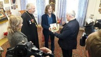 Отец Николай отслужил водосвятный молебен о здравии всех присутствующих и находящихся в этом учреждении и преподнес в дарикону великомученика и целителя Пантелеимона.