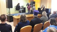 Художник Никас Сафронов на протяжении нескольких лет поддерживает дружественные отношения с ПНИ №4, жертвует материалы и оборудование для творческих студий, которые работают в интернате, а также приглашает подопечных на благотворительные мероприятия со своим участием. Никас Степановичрассказал о своем творчестве и подарил интернату материалы для художественной студии, а его сын, лауреат 16 международных конкурсов, пианист Лука Затравкин (Сафронов) выступил перед собравшимися с небольшим концертом.