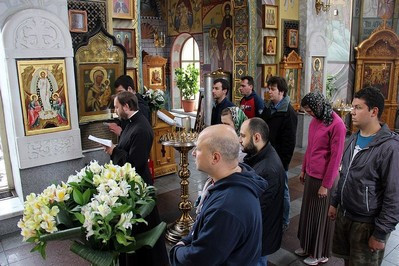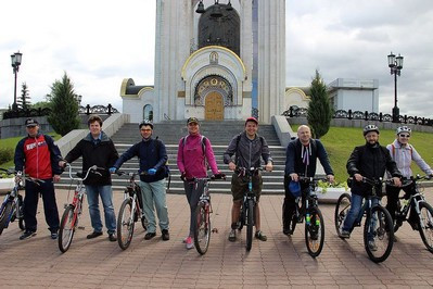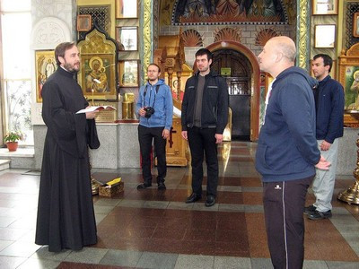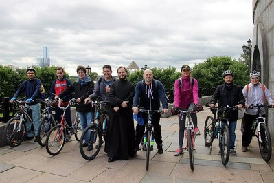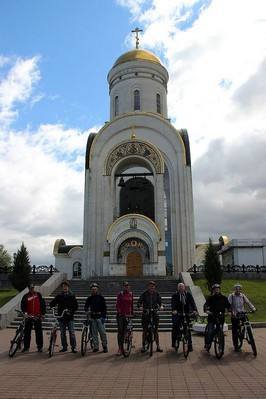 13 июня, 9:10. Поклонная гора. Вся команда в сборе. А это восемь человек, хотя зарегестрировались 17. Но всех отказавшихся можно легко понять, ведь от Поклонной горы до Екатерининского монастыря — 40 километров. Для новичков такой старт — определенный риск. В храме мы пропели тропарь и прочитали молитву великомученику Георгию Победоносцу, молитву о путешествующих, приложились к частице святых мощей и тронулись в путь…