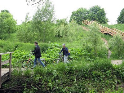 С самого начала мы решили не торопиться. Сверяли маршрут по навигатору. Сначала Минская улица, далее улица Светланова, парк 50-ти летия Октября. Следующий парк — Битцевский. На его территории мы сделали небольшую остановку. Во-первых, здесь много зелени, потрясающей красоты пейзажи. Во-вторых, на этой территории есть речки и ручейки, что в жару спасает. В Битцевком парке мы немного заплутали, поскольку навигатор повел по ложному пути. Предлагаемая цифровой техникой тропинка оказалась непригодной для движения на велосипедах. Выехали мы в районе Северного Чертаново. Затем оказались на улице Красного Маяка и продолжили маршрут по Подольским Курсантам. Западное Бирюлево оказалось позади. Как и самая живая дорожная артерия Москвы — МКАД. Впереди нам попадались небольшие поселки. В 14.40 мы приехали в Екатерининский монастырь.