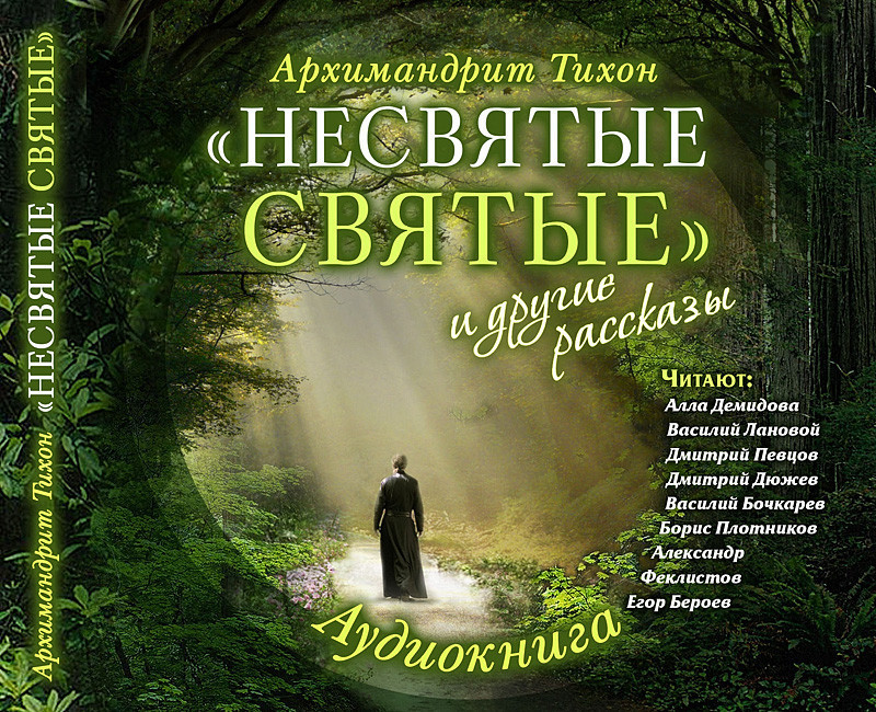 В ближайшее время в продажу поступит аудиокнига «“Несвятые святые” и другие рассказы». В этом трехдисковом издании рассказы архимандрита Тихона читают Алла Демидова, Василий Лановой, Дмитрий Певцов, Дмитрий Дюжев, Василий Бочкарев, Борис Плотников, Александр Феклистов и Егор Бероев.