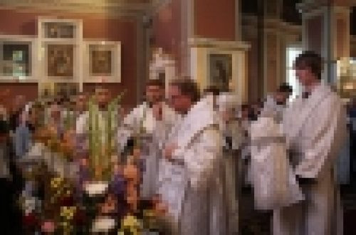 По прочтении праздничного Евангелия Владыка Игнатий поздравил настоятеля собора протоиерея Льва Церпицкого и всех собравшихся с праздником и передал в дар храму богослужебный потир — священный сосуд для совершения таинства Евхаристии.