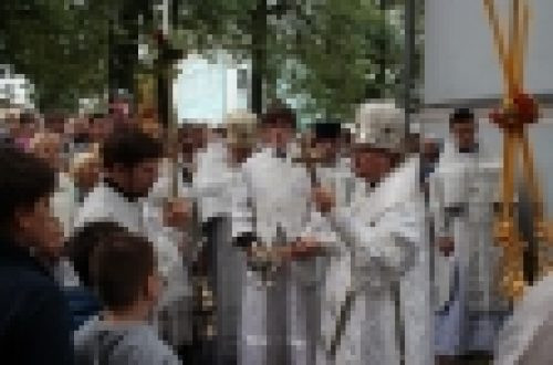После состоялся крестный ход и освящение хоругви казачьего общества.