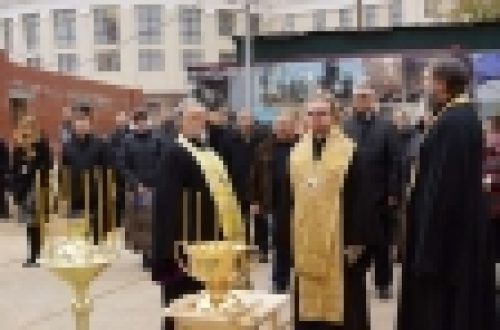 В субботу 5 октября епископ Выборгский и Приозерский Игнатий совершил чин освящения креста для центральной главки строящегося по "Программе 200" храма Иверской иконы Божией Матери в Очаково-Матвеевском.