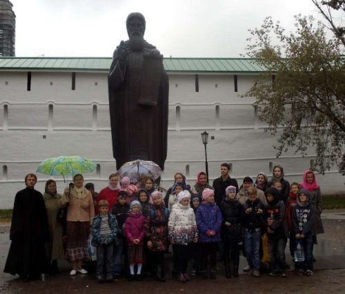 В Троице Сергиевой Лавре ребята приложились к мощам святого, испрашивая благословения на грядущий учебный год, посмотрели соборы Лавры, прошли у стен Московской Духовной семинарии, посетили книжную лавку и направились в Покровский женский монастырь в Хотьково, почтить и родителей святого преподобных Кирилла и Марию.
