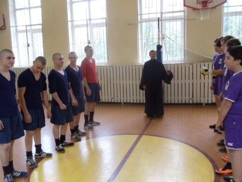 Мероприятие началось с матчевой встречей военнослужащих и старшеклассников школы по минифутболу, перед которым представитель Русской Православной Церкви сказал о поводе встречи и памяти ее проведения.