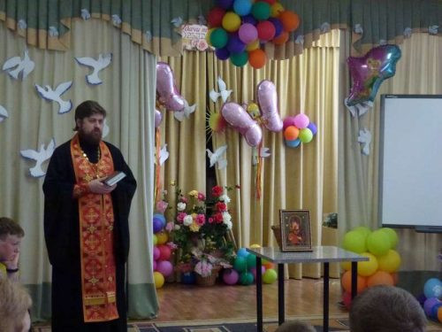 Далее о. Михаил призвал всех присутствующих к совместной молитве, и по сложившейся уже традиции был отслужен Благодарственный молебен на окончание учебного года. Еще один важный торжественный момент нынешней встречи – поздравление директора Детского дома №2 Хрыкиной Надежды Михайловны с днем рождения. О. Михаил отметил, что Детский дом это тоже большая многодетная семья с многими- многими нуждами и обязанностями, и основная забота и попечение о всех членах этой семьи лежит именно на плечах уважаемого всеми директора Надежды Михайловны.