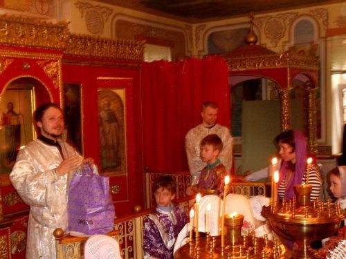 Завершились и послушания ребят в алтаре, при подсвечниках и запивке. Сами ребята не только реально молились, как взрослые, но и несли ответственное служение – распределенное по особому графику несения послушания за богослужением.
